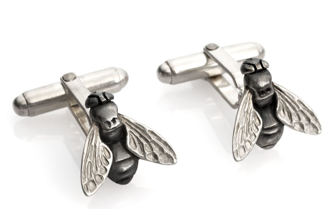 Fly cufflinks silver with swivel backs